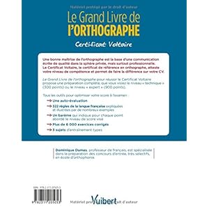 -Le grand livre de l'orthographe Certificat Voltaire ....Atteignez le score que vous visez !, Le grand livre de l'orthographe Certificat Voltaire, Dominique Dumas, Vuibert. Des milliers de livres avec la livraison chez vous ...